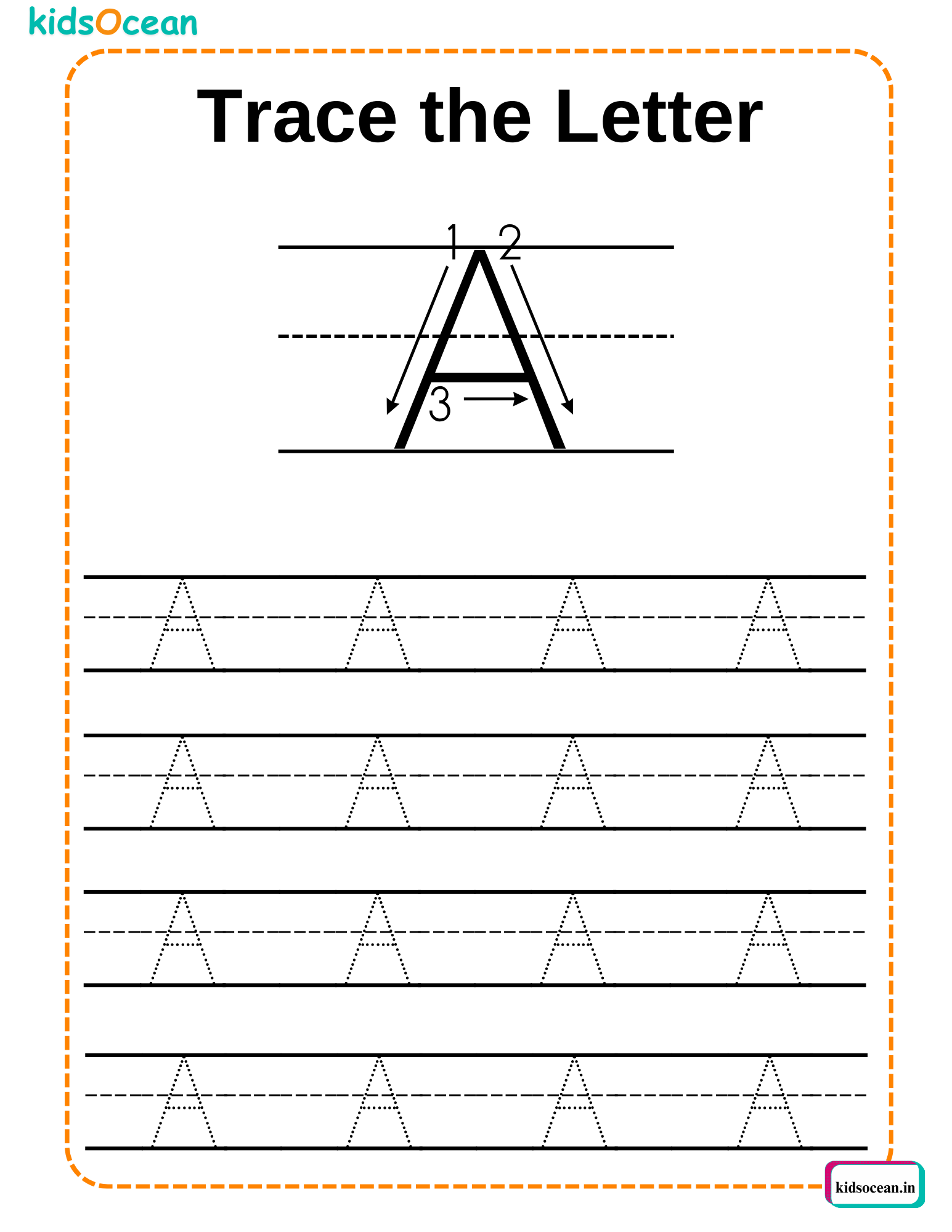 A “trace the letter kids worksheet” is a learning tool designed to help young children practice writing individual letters of the alphabet. It typically consists of a page with large, dotted or dashed letter outlines. Children are instructed to trace over these outlines with a pencil or crayon, following the dotted or dashed path. This exercise helps them develop fine motor skills, letter recognition, and letter formation.
